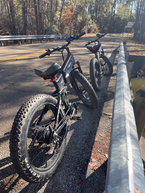 • 3. Now, let’s talk about some fun. Check out our PEXMOR Electric Bikes. Talk about taking it all in. These bikes are powerful, the fat tires handle every terrain you can imagine, and they are tough. You can pedal on your own or cruise up to 30mph to get the most out of your destination. We’ve gone up the side of a mountain, climbed hills in the desert, rode along the loose sand and shoreline of the ocean, and over and along beautiful rivers. Hands down we get the absolute most out of our trips by being able to spend the day exploring on our bikes. Add to all of that they also have horns, lights, digital speedometer/readouts, and a phone holder/charger.